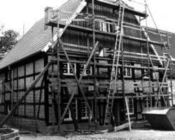 des maroden Zustandes des Hauses wurde eine komplette Entkernung des Hauses vorgenommen. Es stand zum Schluss von den Außenwänden nur noch das Fachwerk, welches zusätzlich mit Stützen